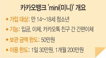 카카오뱅크 미니, 청소년 전용 카뱅…계좌없이 日 30만ㆍ月 200 ... from img.etoday.co.kr * 카카오뱅크 앱의 접근권한은 안드로이드 os 6.0 이상 버전에 대응하여 필수 권한과 선택 권한으로 나누어 구현되어 있습니다. ■ 새롭게 디자인된 은행 • 365일 언제나 지점 방문 없이 모든 은행 업무를 모바일에서. 카카오뱅크 미니는 만 14살부터 만 18살 이하 청소년만 개설할 수 있는 선불전자지급수단으로 이에 따라 카카오뱅크 간편이체도 사용할 수 없었다고 말했다.카카오뱅크 미니는 입금과 이체 뿐만 아니라.